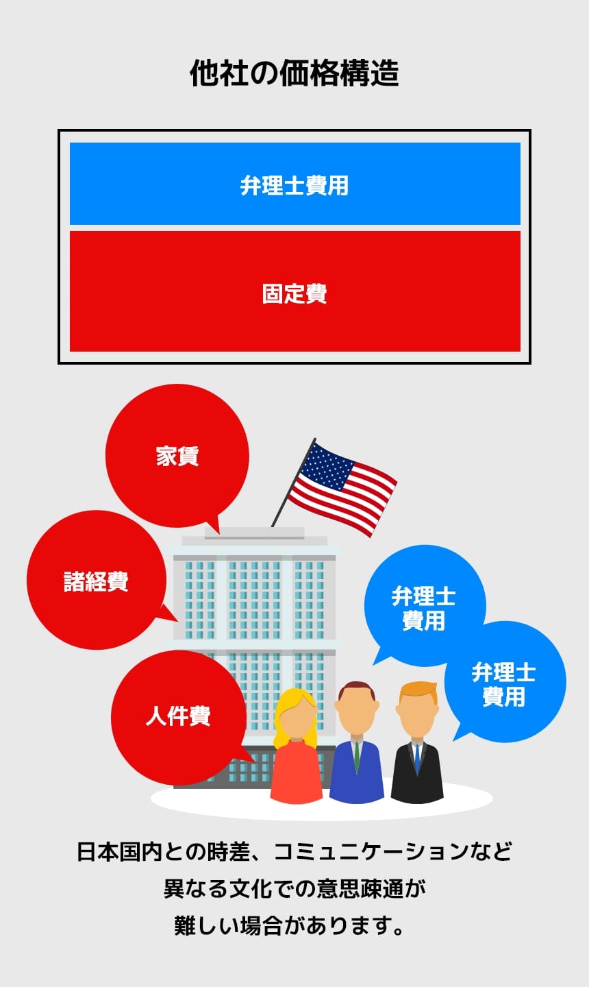 本サービスは、品質を犠牲にし、利益を削ることで実現される単なる低価格サービスではありません。上述した体制を構築することで実現される合理的な価格によって提供されるサービスであり、日米双方で豊富な実務経験を持つ専門家が対応することで、他事務所に勝る最高品質の実務サービスを提供いたします。品質を確保しつつ、適正価格でのサービス提供を実現し、円安によるメリットを日本企業の皆様に還元いたします。